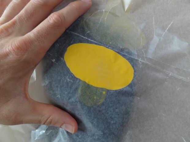 El resto de la cinta del rodillo en un tubo y cortarlo en 4 trozos de igual tamaños. Cada una de las secciones deberá ser enrollado en una bola y colocados en cada dedo del pie. Romper hacia abajo y formar en cojines de tamaños adecuado.