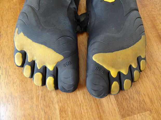 No se ve a esperanza. Unos cuantos trozos grandes han tomar fuera de los zapatos, y los dedos del pie ya han tomado algunos desgaste extenso. En la mayoría, yo diría que esta reparación duraría un mes.