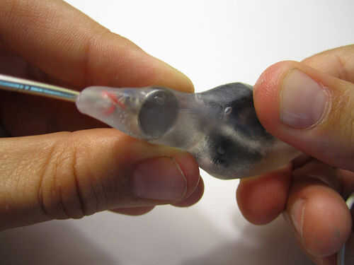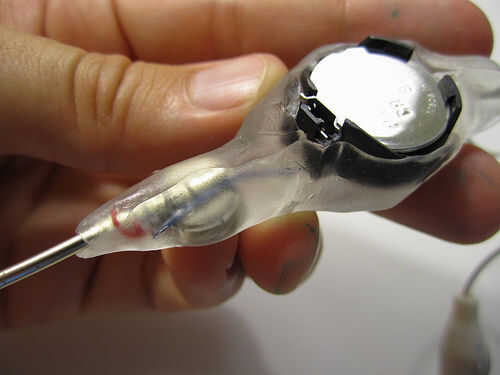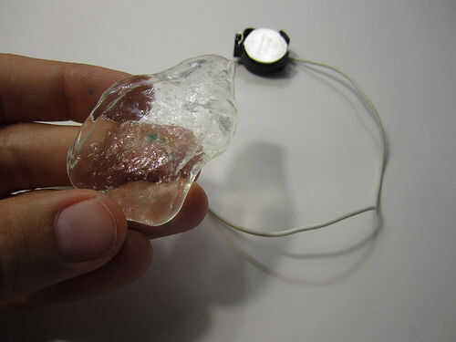 Hervir agua y añadirle un puñado de gránulos de shapelcok. Remover y esperar a ser transparentes y pegan entre sí, formando un grupo. Quitar los grumos y sacuda el exceso de agua caliente. Amasar el shapelock juntos y luego moldearla en su circuito. A partir del gancho, formando alrededor del soporte de la batería y terminando en el cable de la pinza de cocodrilo. Ver fotos de cómo sería el diseño final.