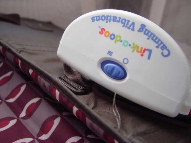 Un poco de trabajo, y tenemos un Moisés vibrante, gracias a un hack muy fácil a la unidad de vibración del asiento hinchable que ahora puede viajar fácilmente entre la cuna y el asiento.