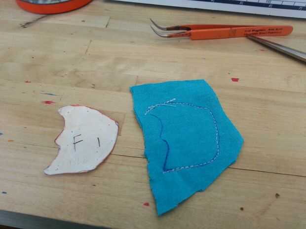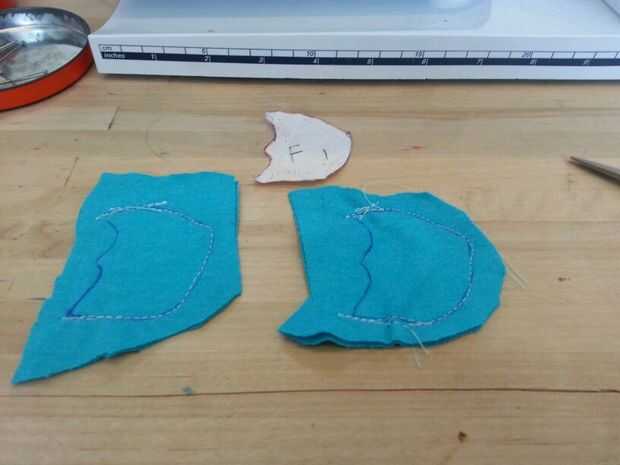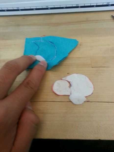 También corté una línea cerca de la mitad posterior del pie. Este es el agujero que se utilizará para conectar el cuerpo a los pies. Esto también le permite voltear el pie de adentro hacia afuera para que el lado bueno de la puede ser visto.