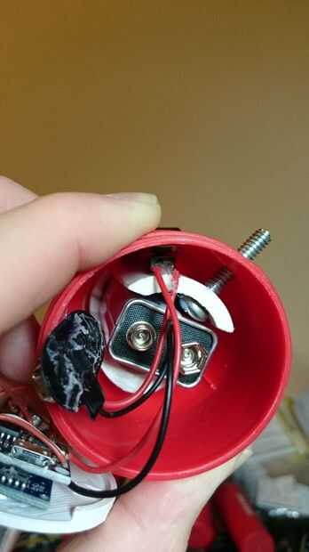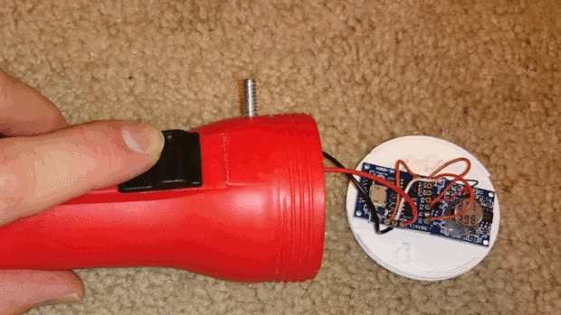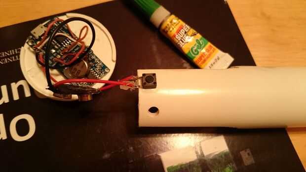 Queremos que coloque ese pequeño botón negro bajo el interruptor de la linterna de manera que cuando se empuja hacia adelante el botón se mantiene presionado. El botón será pegado en su lugar y que está sobre él.