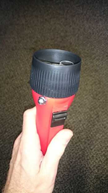 - Utilice pinzas o alicate fino para colocar el botón donde se presiona cuando el interruptor de la linterna está delante.