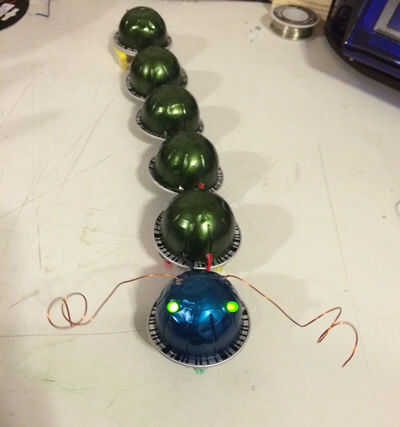 Mi nueva cafetera utiliza monodosis adorables que estaban gritando sólo para ser utilizado en un proyecto. Puesto que Halloween está a la vuelta de la esquina, decidí que era tiempo de hacer algo (además de otra taza de café). Así que aquí está mi Instructable sobre la creación de un café-pod-caterpillar que vibrará feliz a través de su piso, stoop o mesa de dulces de Halloween. Es un despegue en el Bristlebot estándar.