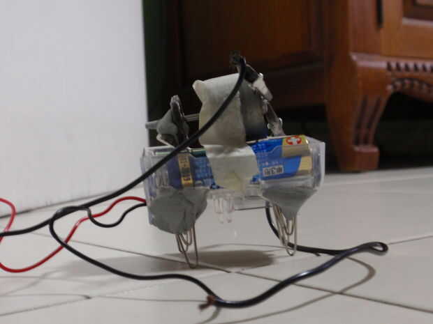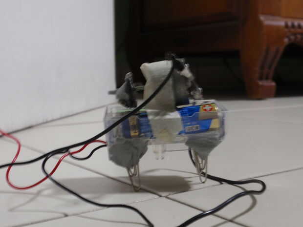 virbrobots más que un cepillo de dientes por debajo del cuerpo del vibrobot. Esta versión utiliza clips pequeños como '' patas '' para apoyar el vibrobot. La desventaja es que no puede ser estable y las piernas pueden mover fuera de posición (si está utilizando blutak,).