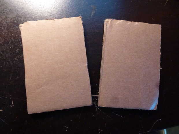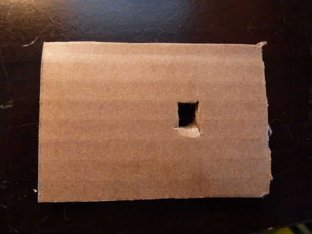 Ahora usted está listo para comenzar. En primer lugar, cortar 2 rectángulos 3 x 2" en su cartón. Trate de no doblar el cartón. Estas piezas servirán como el cuerpo de su Vibrobot. En uno de los rectángulos recortar un pequeño cuadrado un poco lejos del centro de la cartulina.