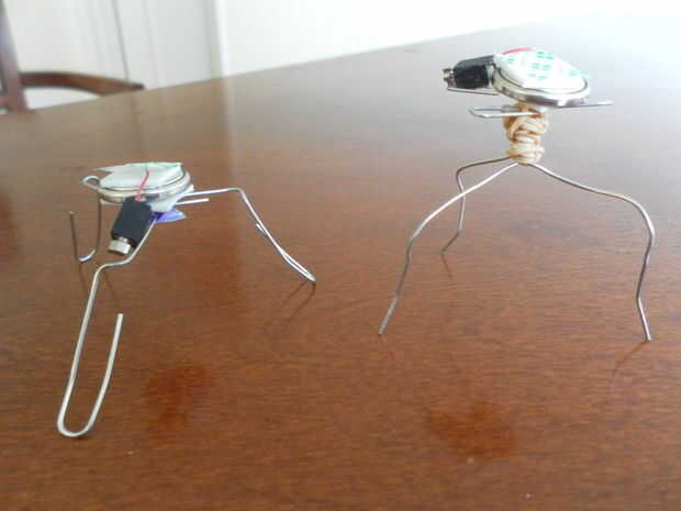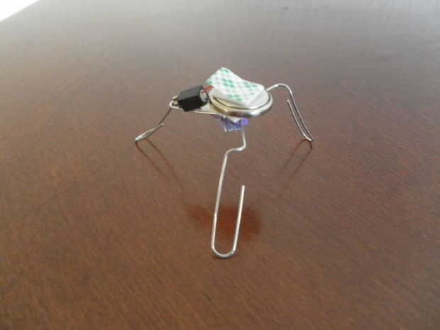 En lugar de una cabeza de cepillo de dientes, clips de papel sirve como el cuerpo. El cuerpo de forma triangular es estable y no caer o voltear fácilmente como vibrobots de cabezales de cepillo de dientes.
