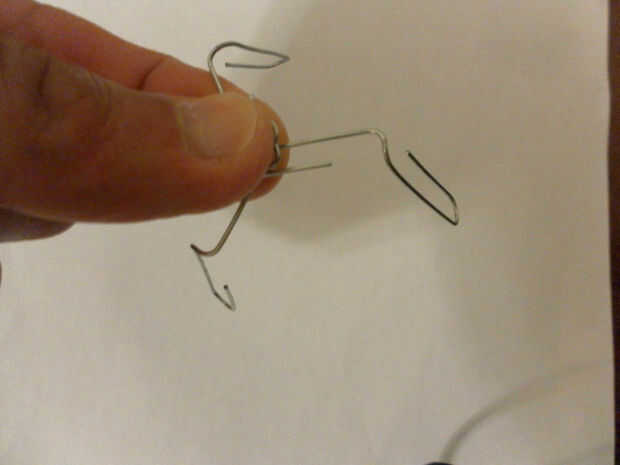 La deformación del alambre del lazo del giro alrededor de las tres un clip corto piernas tan tensos como sea posible.