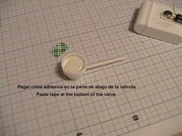 Pegamos un pequeño cuadrado de cinta adhesiva, la parte de abajo de la valvula de at.