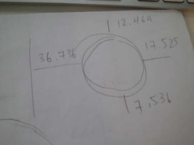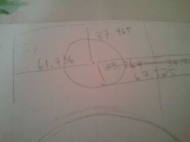 Así que redid las medidas para el punto central de los orificios. Las medidas salieron algo así como: mm 61,736, 37.465 mm, 67.525 mm y Créanlo o no, realmente medido esto. Tan tonto.