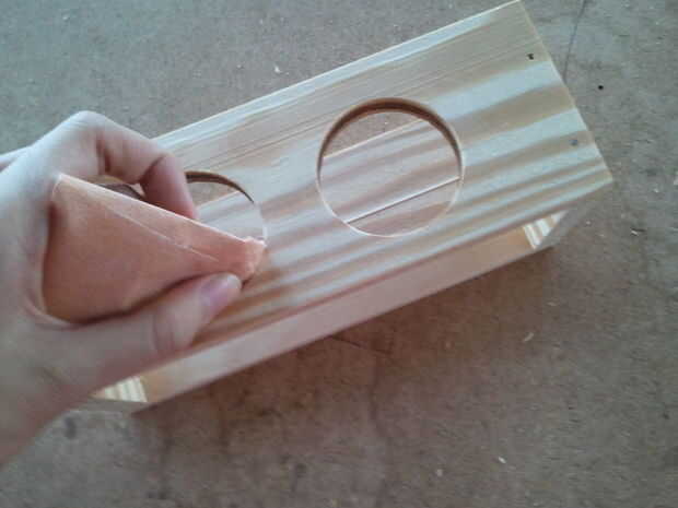 Después de hecho esto, usé papel de lija para suavizar a los bordes y deshacerse de todos los bits y piezas de madera que estaban asomando. Entonces, coloqué el recorte en la parte superior los agujeros para asegurarse de que no cometí un error en el posicionamiento de los agujeros. Es una buena cosa que no había.