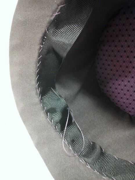 Mano coser la cinta en el interior borde inferior de sombrero. Esto ocultará todas las curvas recortadas. Envuelva la cinta restante alrededor de una cinta del sombrero. Coser en su lugar.
