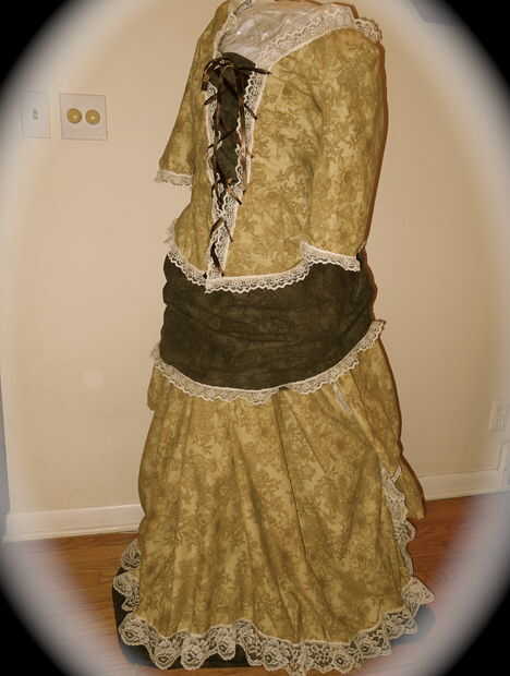 Este vestido no pretende ser una réplica histórica, y también no significó para adaptarse a cualquier manera específica de cualquier período de tiempo determinado. Aunque es definitivamente similar a la moda durante el siglo XIX. Mi papá siempre me ha dicho lo que todo el mundo usa para encajar la moda es, pero estilo es algo que creas para ti mismo que te define. Esta es mi primera vez haciendo algo tan grande sin un patrón.