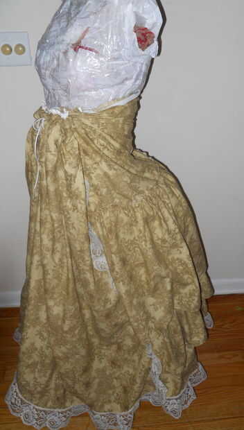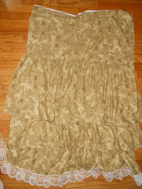 Hice la espalda y el frente en dos pedazos entonces se unió a ellos y había agregado la sección más baja. La espalda es básicamente un panel de tela con el con las tiras con volantes cosidas en. El frente es simplemente se reunieron en la cintura. Se cose la parte inferior en el último, y me dio cierta flexibilidad con la longitud.