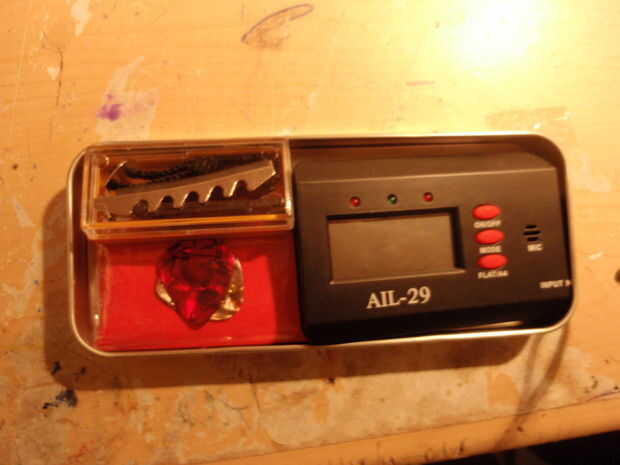este es mi udgrave de mi primer kit de supervivencia.El único cambio es un sintonizador diferente y un peg más. Tomo este afinador porque, en mi kit de guitarra eléctrica, éste no podía no encajaba.Él también bolsillo tamaño!Para hacer esto que usted