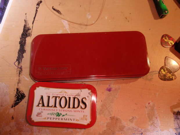 tengo esta idea de la guitarra original de Altoids publicado por bumpus. Cuando me puse a hacer mi propia guitarra de lata Altoids, decidí hacer un Instructable fuera de él.¡ Disfrute!Paso 1: Herramientas y piezas necesarias Piezas necesarias:(1) vac