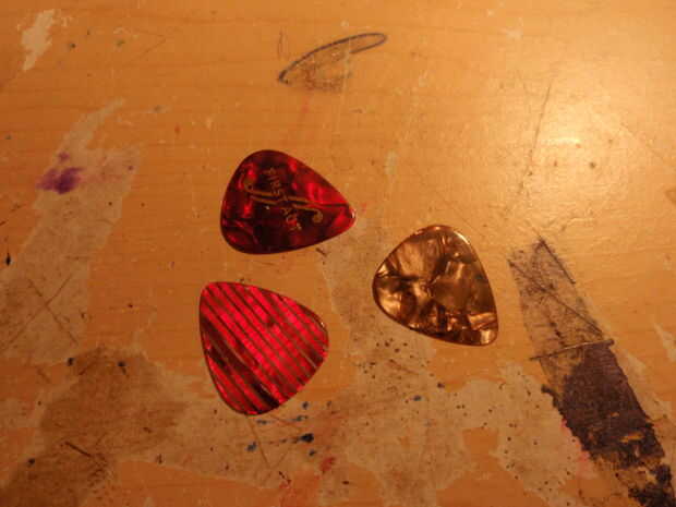Un pick de guitarra siempre es una cosa de Dios que. A menos que juegues usando fingerpicking, es un necissity. Permite rasguear las cuerdas, haciendo el sonido. Además, ocupan poco espacio, por lo que puede meter algunas de ellas en la bandeja de Voctorinox.