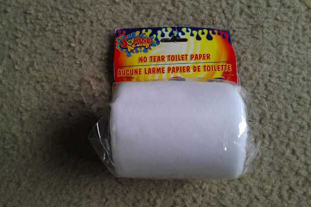 -Papel plástico (en forma de broma no rasgar papel de higiénico, puede utilizarse para vendas y con abrigo.
