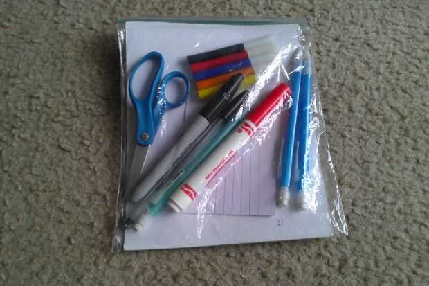 -Otros objetos, tales como cinta, pegamento, gomas y otros objetos pequeños posiblemente útiles.