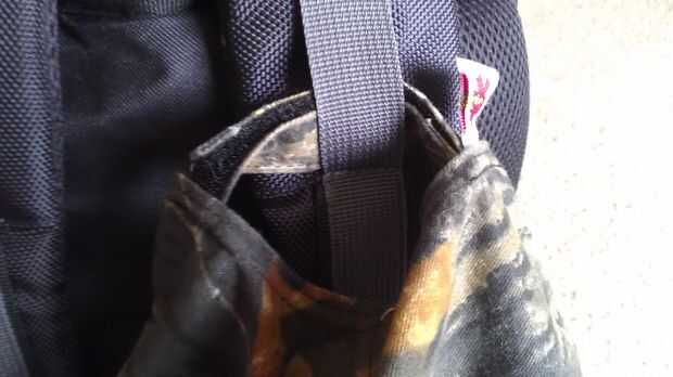 Las correas de una mochila se unen generalmente en la parte inferior por una cinta plana. Fácilmente puede adjuntar una cantina y bolsa a cada lado. Temporalmente puede anexar su sombrero en la parte superior de una correa de mochila a través de la correa de ajuste en el sombrero.