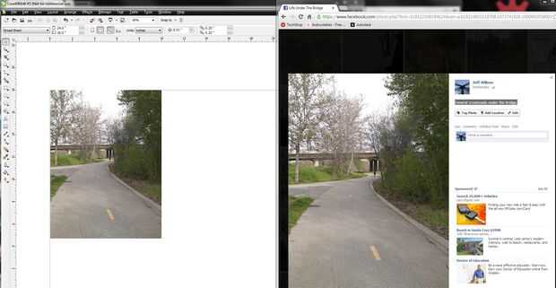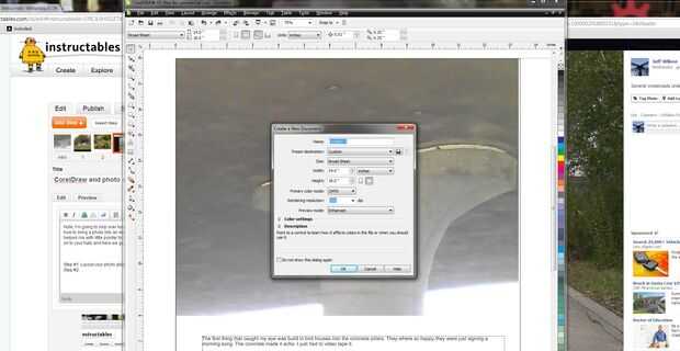 Paso #7: Ahora, todavía estamos en CorelDraw; una vez más pasar a la barra de herramientas izquierda, ir siete iconos abajo a la >icono 'rectángulo' y arrastrar sobre la 'foto todo y el texto ' a > 'crear un marco de '. La razón por la que está haciendo esto es para capturar la foto y el texto como una imagen para que pueda guardar como un archivo jpeg y acercarles a la instructable. Puede cambiar el grosor de la línea en el marco y el color así por pasar a la herramienta pluma.