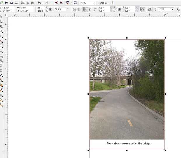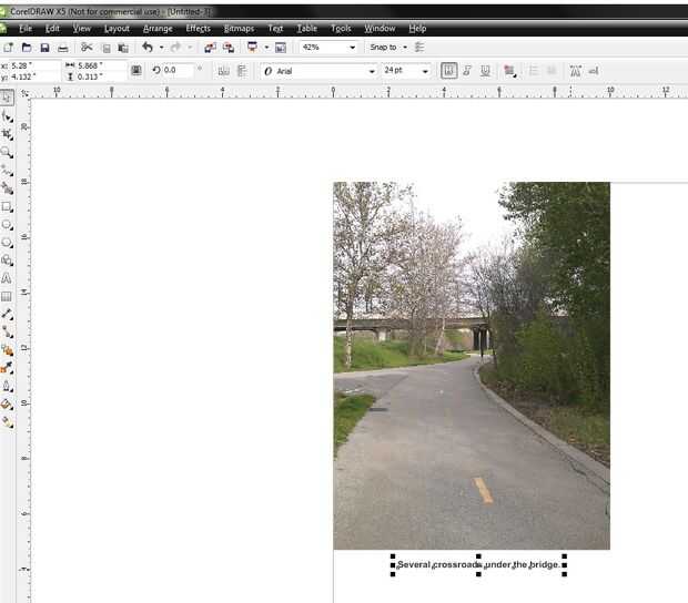 Paso #6: El ' campo de texto ' puede ir por camino más allá de tu foto. Si consigue el ' herramienta seleccionar' en forma de una 'flecha' otra vez más a la izquierda (es el que está en la parte superior). Ahora agarra una de las cajas de frontera negro en el medio exterior y exprimirlo hacia atrás sobre la foto. Si no haces esto, la conversión en un archivo jpeg (imagen fie) se lee como una imagen y hacerla parte de la foto total. Esto crea un huésped indeseado campo blanco fuera de tu foto. Parece fuera de balance y feo.
