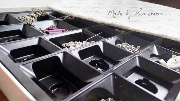 Desde una perspectiva funcional es útil disponer de un elemento pequeño, una caja de cerillas, por debajo de la caja se incline hacia adelante. La ligera inclinación facilita recoger joyas y también hace más de una exhibición que una bandeja.