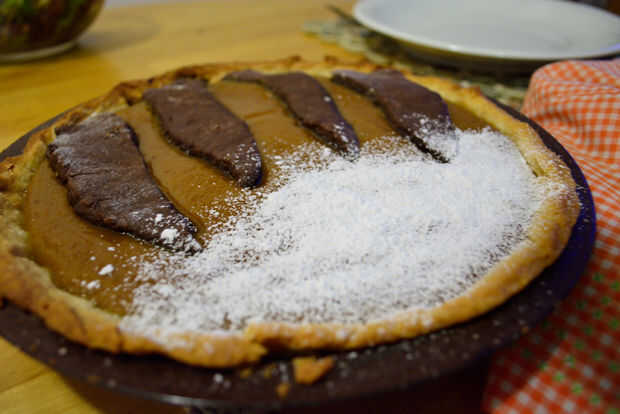 Para celebrar el día Pi este año optaron por una calabaza variedad de pastel, pero dio un paso más: rayas de tigre. Sí, me refiero al libro cum película de Martel, "Vida de Pi". No tengo un toque de un chef pastelero para la presentación, lamentablemente. Me encantaría ver si esto realmente puede verse como rayas de tigre. Si probarlo, por favor comparta fotos de su intento!