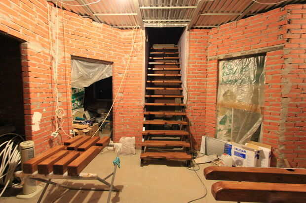Cuando nos decidimos a hacer el diseño de interiores en estilo marinero - queríamos que estos registros. Realizamos escaleras de madera y vigas de la escalera de los registros. Lamentablemente no tengo photoes de estos troncos y maderas desde los inicios de nuestro proyecto, pero en primer lugar hemos limpiado con plano de carpintero (tenemos uno eléctrico). Después de eso hemos sellado todas las rendijas con masilla especial para madera plástica. Luego tomamos una máquina de pulir y lijar la madera paso a paso con lija de 80-100-250-500-2000 arena.