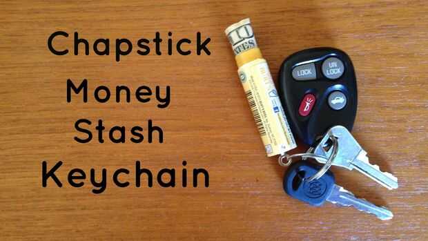 Si eres como yo, entonces a veces sólo olvida su billetera. No se preocupe, usted podrá convertir fácilmente un tubo usado de bálsamo de labios o Chapstick en a un llavero que algún dinero de emergencia. Quite el disco de plástico dentro del tubo con un par de alicates de punta delgada. A continuación utilice una hoja pequeña para sacar de la rueca en la parte inferior del tubo. Esto revelará un agujero pequeño en el centro de la parte inferior del tubo. Pegamento caliente un acoplamiento en este orificio; Esto es donde el tubo se acople a tu llavero. Todo lo que queda ahora es añadir algo de dinero!