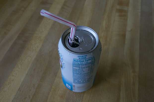 ¿Enfermo de su paja flotando y flotando al tratar de disfrutar de un refrescante dulce lata de soda? Simplemente doble la pestaña hacia delante sobre la apertura y meter la paja en el agujero en la ficha Voila, su paja no va dondequiera!