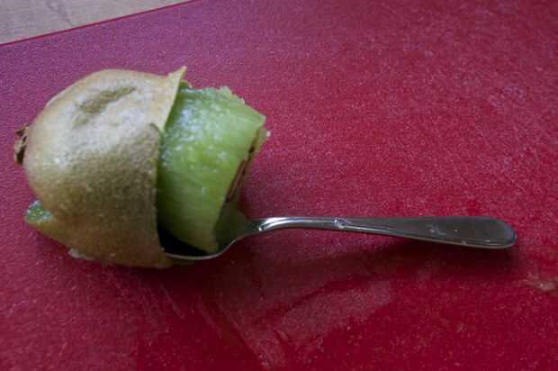 Si nunca has probado la descamación de la piel de un kiwi con un cuchillo y luego lo que no es muy eficiente. En lugar de perder la mitad del fruto usando esa técnica use una cuchara en su lugar.