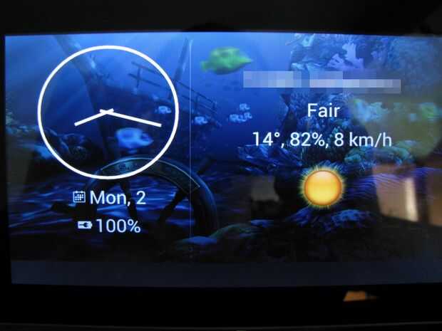 Está en casi 24/7 y muestra el reloj, el tiempo y fecha (es capaz de mostrar un tono de cosas más).