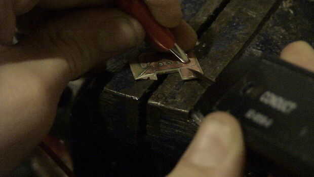 Luego configurar mi dremel con la broca más pequeña y perforados en las marcas