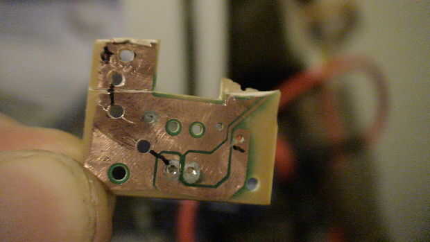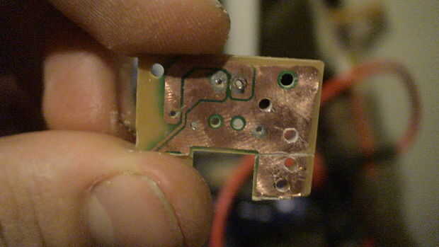 después de cortar el contacto sacó los agujeros a taladrarse con un rotulador.