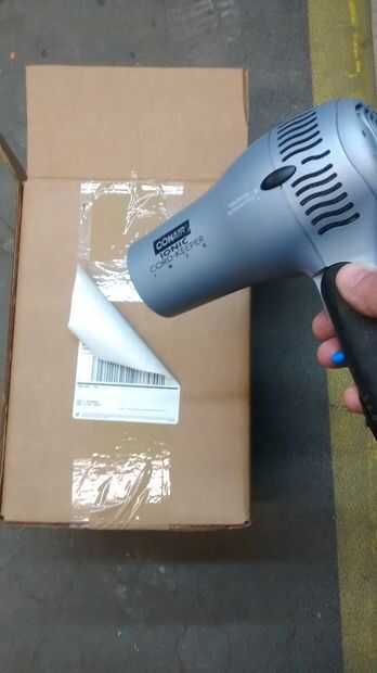 Así que quieres enviar algo hacia fuera y tener una gran caja, y se cubre en las etiquetas. Use un secador para calentar para arriba la etiqueta para que el adhesivo se calienta así pelado apagado la etiqueta es más fácil. Esto también puede trabajar para la cinta en la caja.