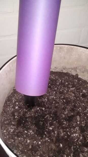 Si alguien ha estado alguna vez en este sitio conoce la botella de cerveza en el truco de la maceta. Que está muy bien pero cuando la gente ve lo que ven una botella de cerveza en una jardinera. Simple agarré algunas cintas y un pedazo de papel de construcción de mi hijo, hecho de un tubo y desliza sobre la botella. No tengo pero se podría escribir en el papel lo que está en la maceta, y gente no tiene que ver lo que bebes. No necesitan saber.