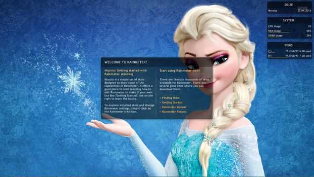 Después de instalar rainmeter, verá algunos gadgets en pantalla.