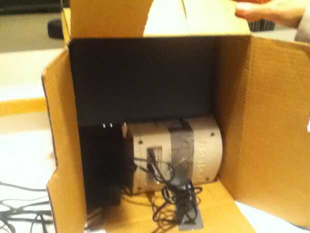Lo que hicimos fue establecer el reproductor de dvd en la parte superior del subwoofer en perfecto equilibrio así que permanecería estable.
