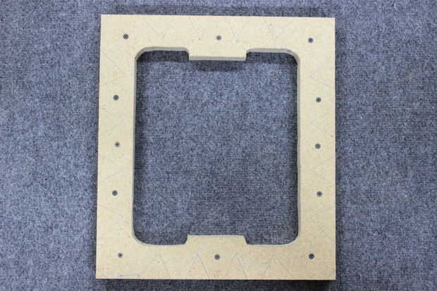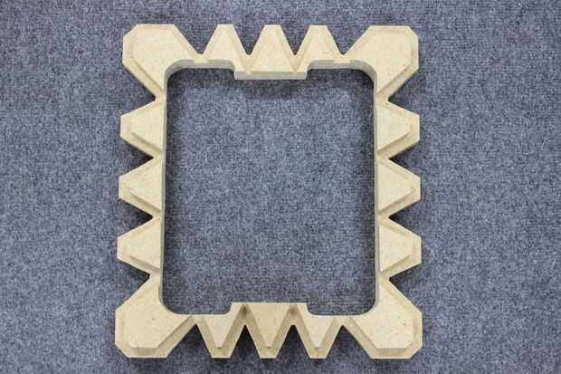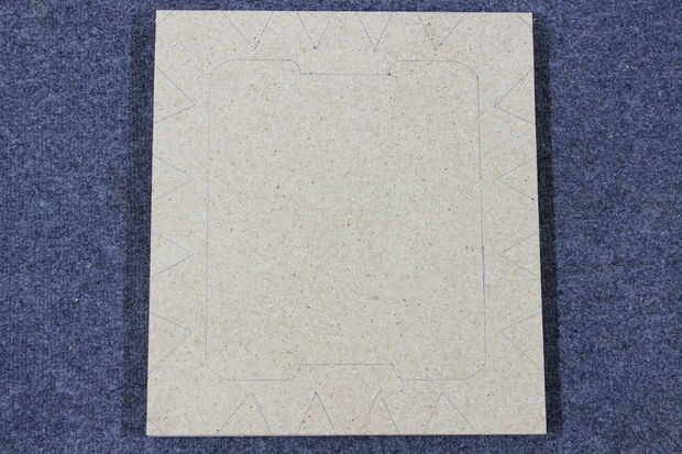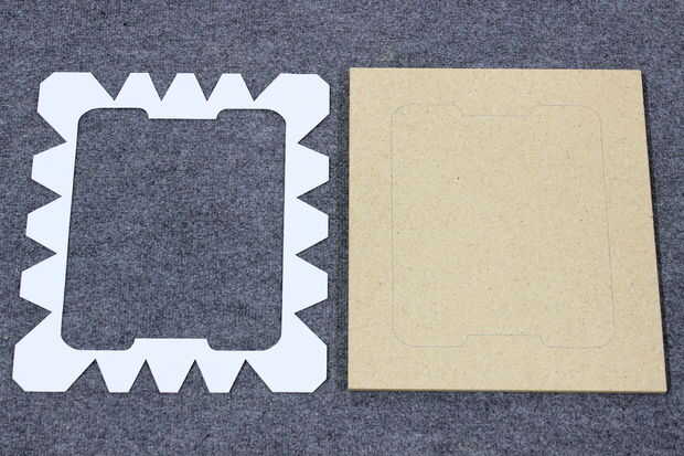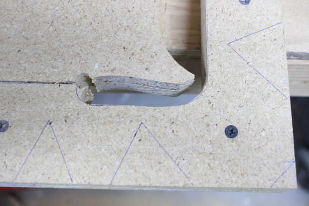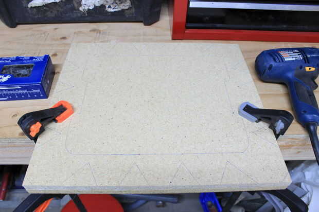 Para crear el marco de la cara que empecé cortando piezas 2 rectángulo del tamaño de lo Thwomp, que mide 14 "X 15 5/8", desde el tablero de partícula de 1/2" usando una tabla VI.
