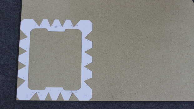 El siguiente paso fue cortar el centro del marco frontal. Comencé por trazar la plantilla del marco de cara a un lado de la Junta. I fijar el marco de cara a una tabla y utiliza una sierra caladora para cortar el centro. Taladré agujeros en las esquinas ya que son curvas muy cerradas, esto hace más fácil de cortar con la sierra caladora. * Estaba tan emocionada cuando me cansara! Estaba realmente preocupado por mantenerse en las líneas, pero me tomé mi tiempo y salió limpio:) *