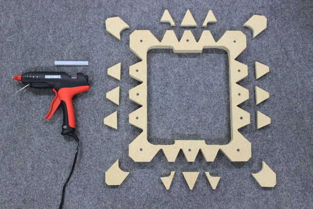 El último paso fue el pegamento en las puntas pequeñas al marco de la cara. Añadiendo estos creará un pequeño muro alrededor de cada punto por lo que se parece a lo real. Desea añadir los clavos pequeños para el punto correcto en el marco de la cara. He añadido pegamento a los lados traseros de los picos pequeños y presiona en su lugar.