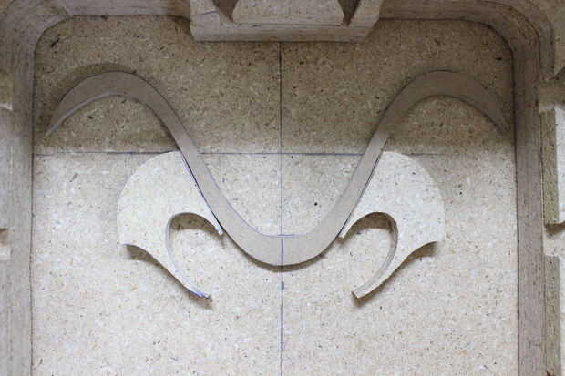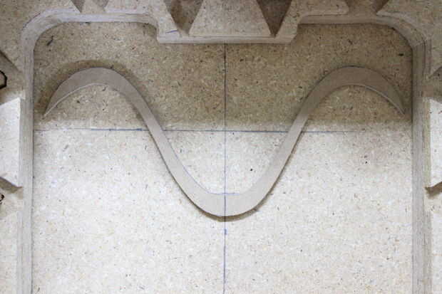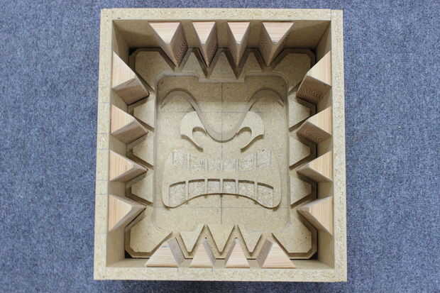 Para colocar la cara empecé a calculando donde cada pieza necesita ser colocado en la parte inferior de la caja de moldeo.