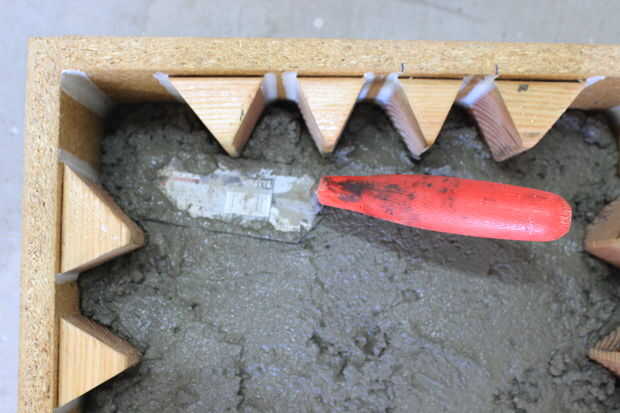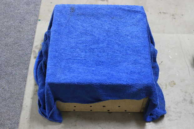 Cuando tuve la caja completamente lleno y se niveló, añadí una toalla mojada en la parte superior para ayudar a retener la humedad mientras el concreto curado. * Derramé mi concreto en un día particularmente caluroso así que comprobado cada pocas horas y humedece la parte superior con agua para evitar que se cracking.*
