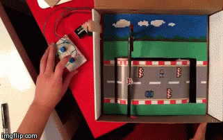 También es la oportunidad para ampliar la idea de juego física, crear tus propios juegos nuevos a incluir en el cuadro mediante el uso de plantillas. He creado un juego de coches de carrera inspirada de Frogger y Pole Position.