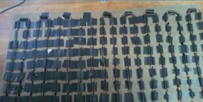 Repita los pasos 2 y 3 hasta que todos los agujeros en el tablero de clavija se atan con alambre, (una batería de 3V moneda poderes cerca de 24 luces LED).