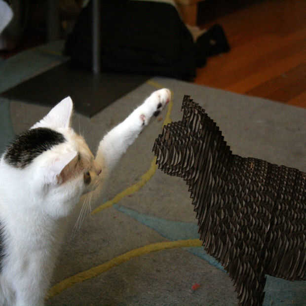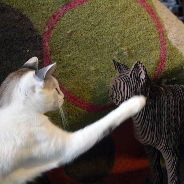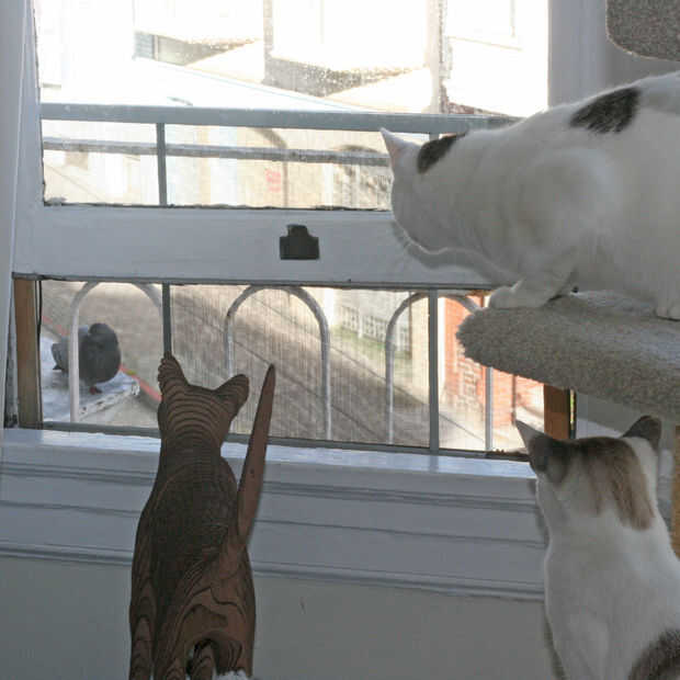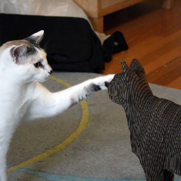 Eventualmente, los gatitos se puso a trabajar y determinaron su dominio sobre el nuevo gato. Incluso no lucha y resiste! Pero gatos incluso cartón están interesados en las palomas de la caza, por lo que al final encontraron terreno común y se asentaron en su nueva vida juntos.