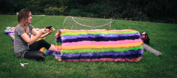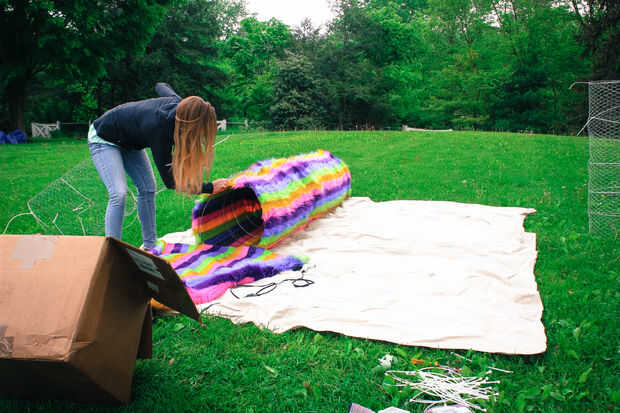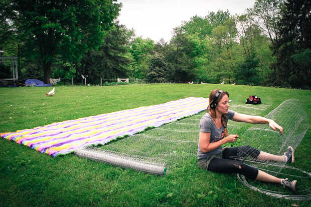 El desafío era que esto no sólo tenía que ser grande, pero también transportable y ligero. Yo sabía que podía hacer esta cosa entera de enrejado de alambre y alambre de tensión y tenía sentido hacerlo en secciones.