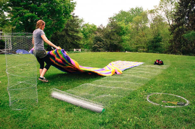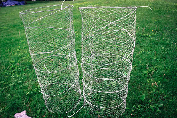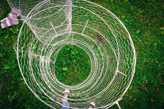 El alambre de pollo quiere naturalmente de la curva, por lo que es bastante fácil hacer coincidir los extremos. Una vez tengas los tubos generalmente formados, conecte el cable de pollo a sí mismo, mediante el corte de puntas o incluso zip lazos donde sea necesario.