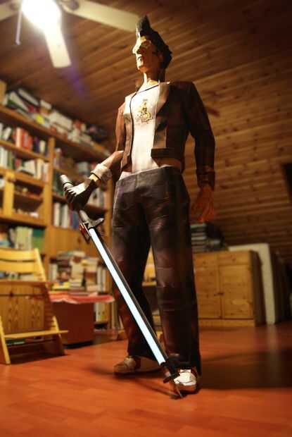 Siga mi Instructable y Permítame ayudarle a llenar el vacío con una no demasiado caro 1:1 versión en papel de Travis Touchdown, incluyendo su brillante Beam Katana.